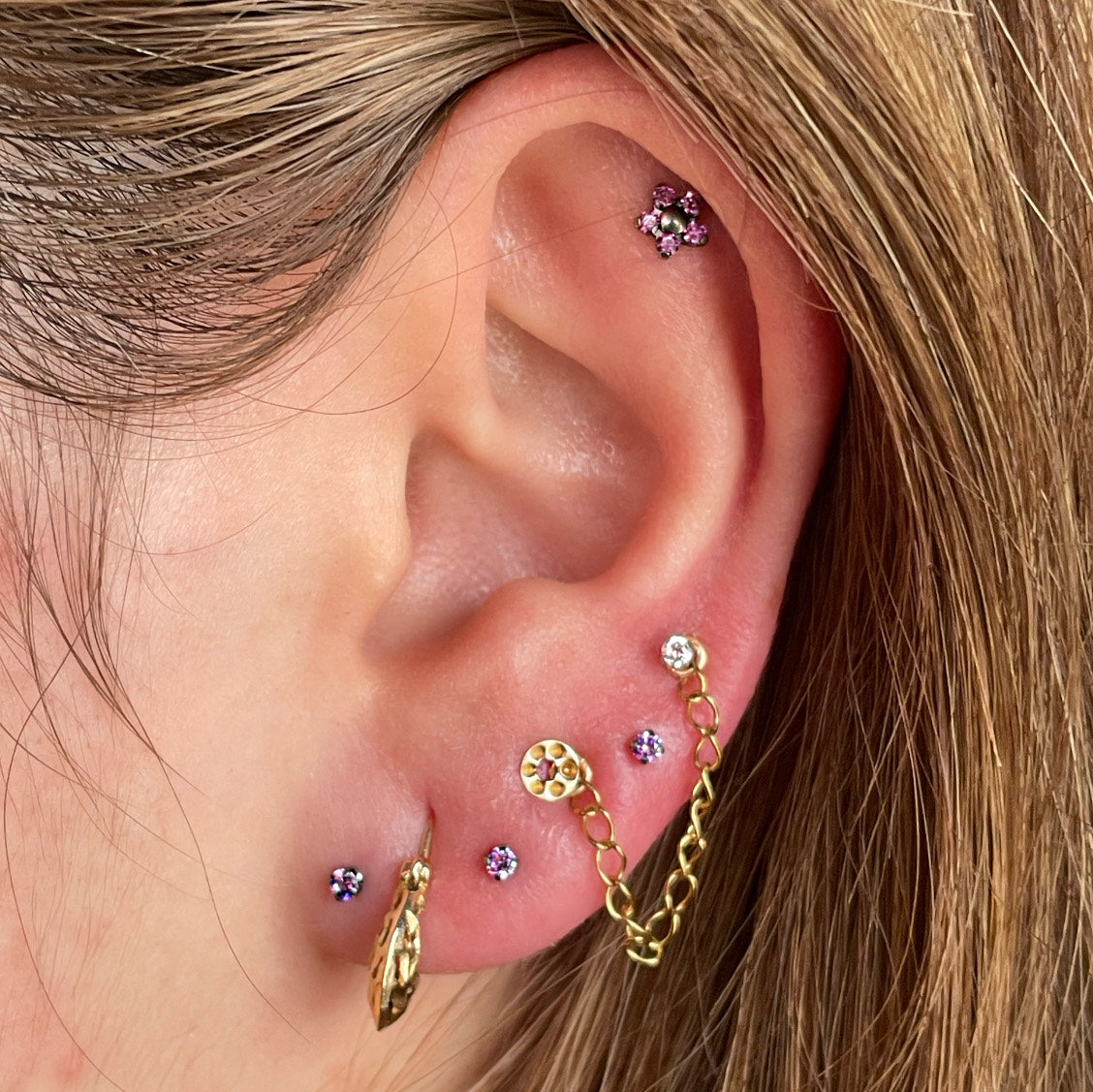 Since 2010, I have cultivated a deep passion for all types of piercings, thriving especially in ear curation, genital work, and kids' ear piercings. My journey began under the mentorship of Alicia Cardenas, a time that shaped my expertise and dedication to the craft. I am forever indebted to her for gifting me the life I’ve always wanted and hope to make her very proud of this next journey.